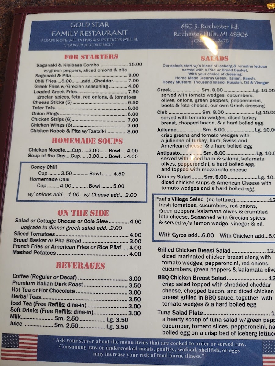 Gold Star Family Restaurant offers a straightforward and comforting menu that suits a range of dining occasions, from hearty breakfast gatherings to relaxed lunch breaks. The menu features classic family-style dishes and familiar favorites, emphasizing warmth and simplicity in every bite.
